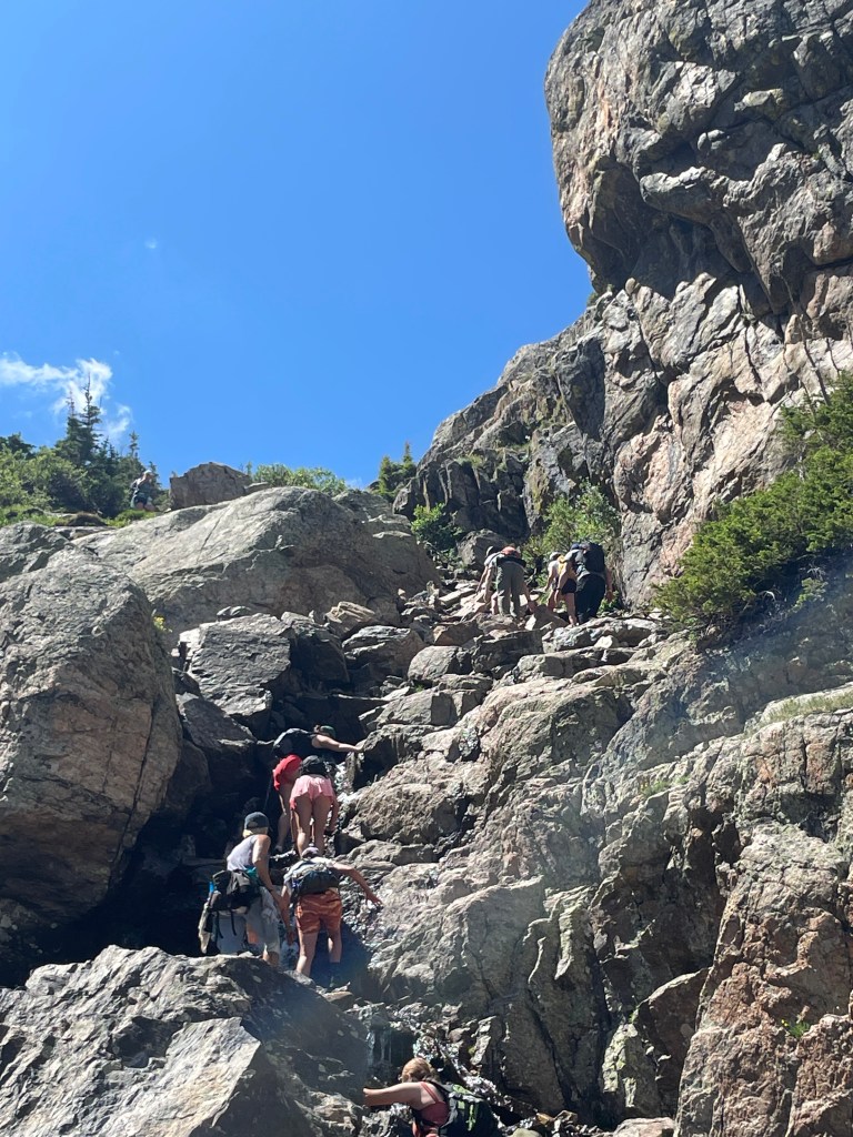 We would need to navigate steep, slippery rocks with hands and feet on an unmarked portion of the trail.
