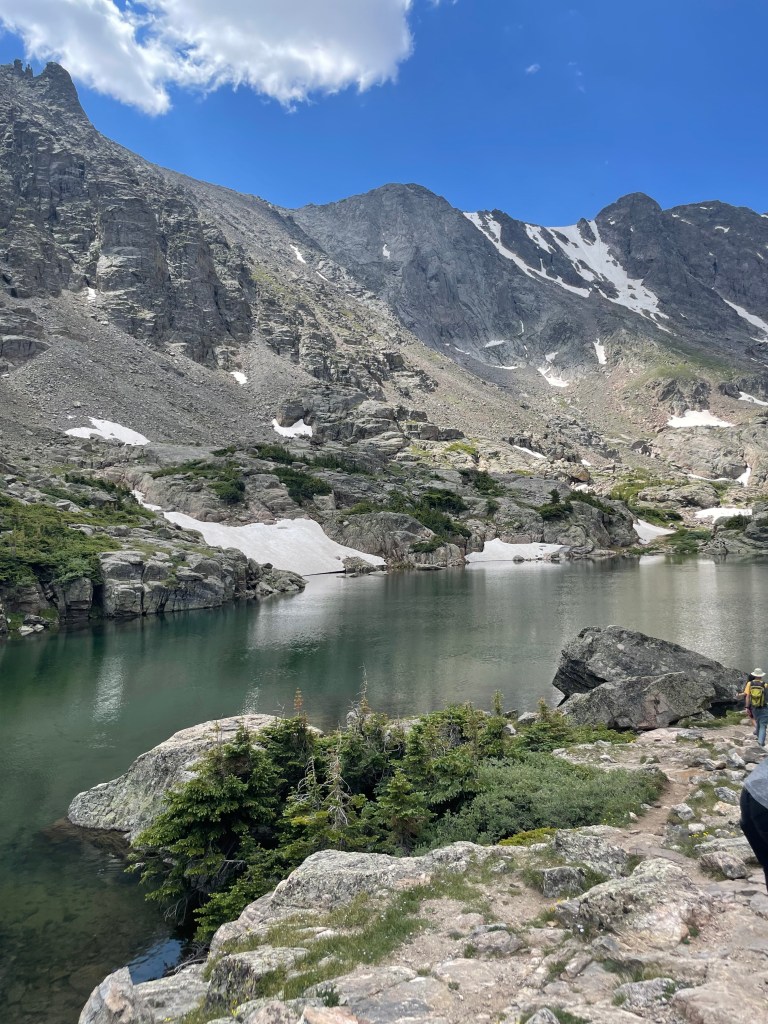 When I pulled myself to the top of the scramble I looked expectantly for my family. I believed that our desired destination, Sky Pond, was at the top. I started down a path that lead around a bend in the rock – surely the pond would be there.