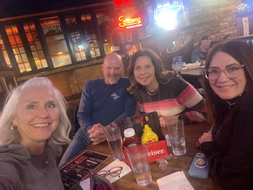 Lovely dinner – got right in. Burnt ends burger. A little disappointing – truffle fries off the menu. Semi delicious mock tail. And then we were off.