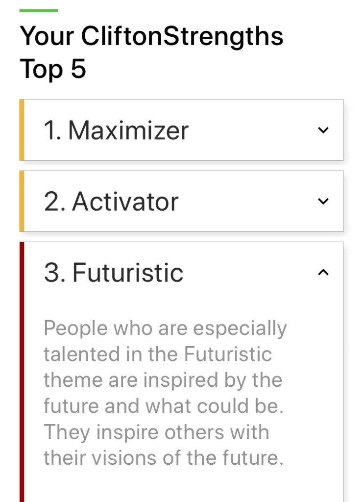 FUTURISTIC-it’s one of my top 5 Stengths on the CLIFTON Strengthsfinders assessment. Def: